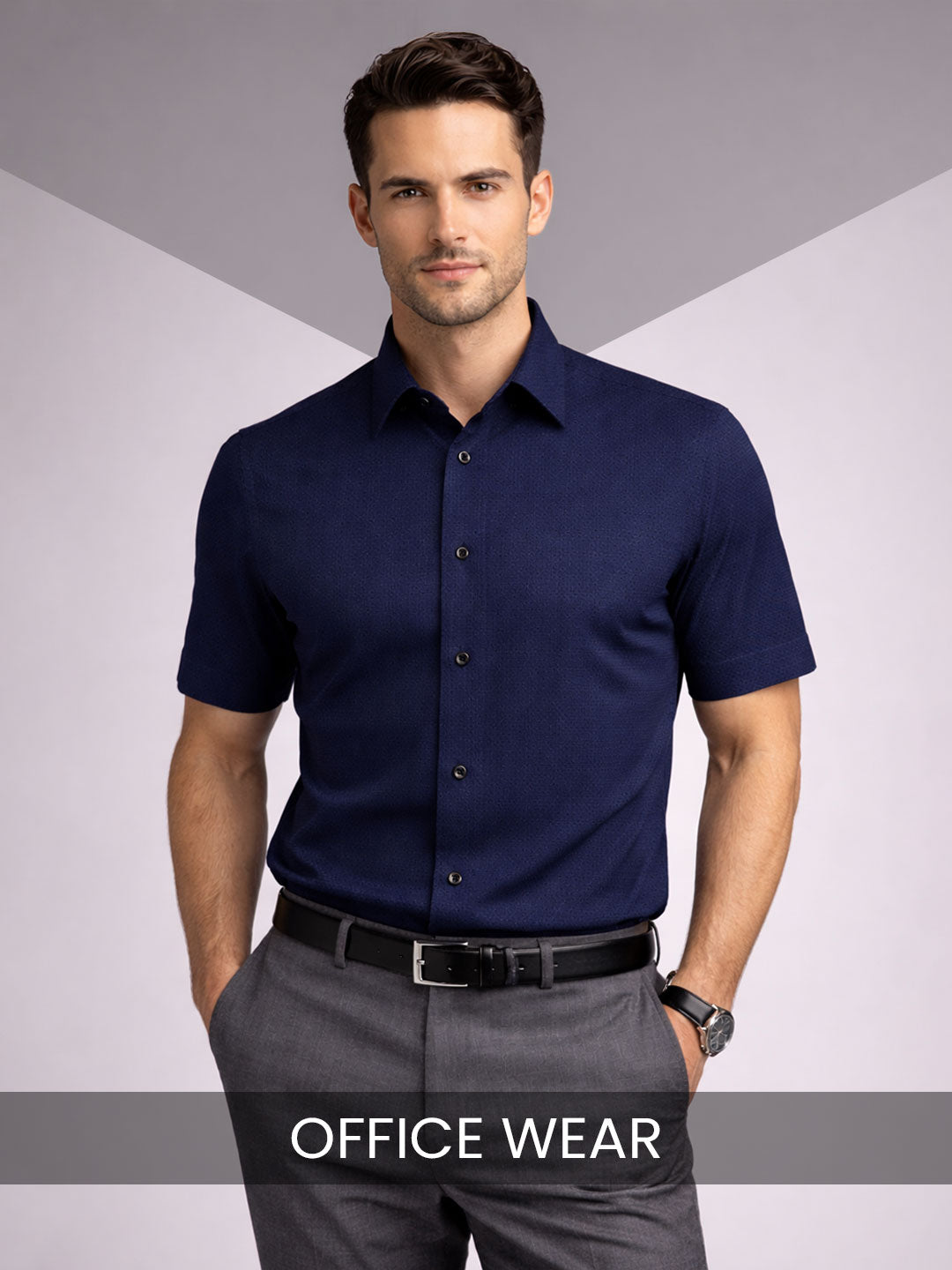 Men's long-sleeve cotton blend casual dress shirt with a geometric pattern
