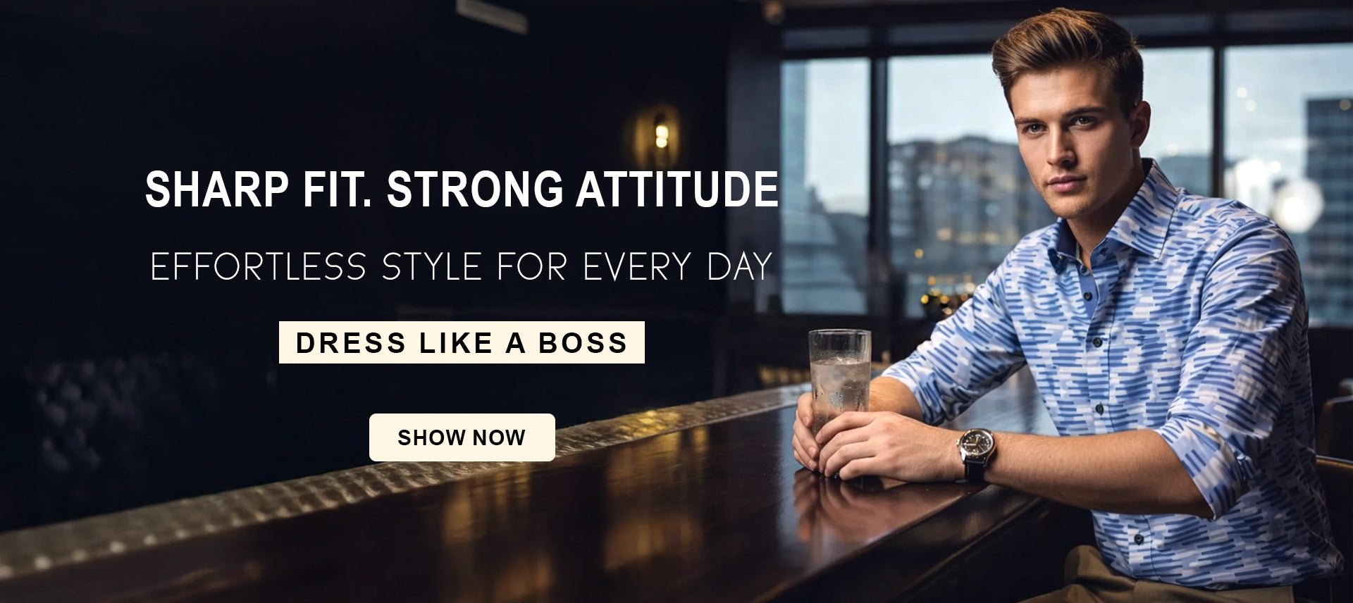 Men's long-sleeve cotton casual dress shirt featuring abstract pattern