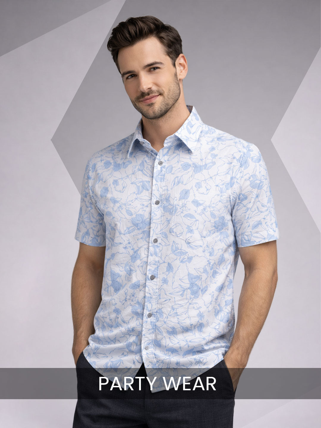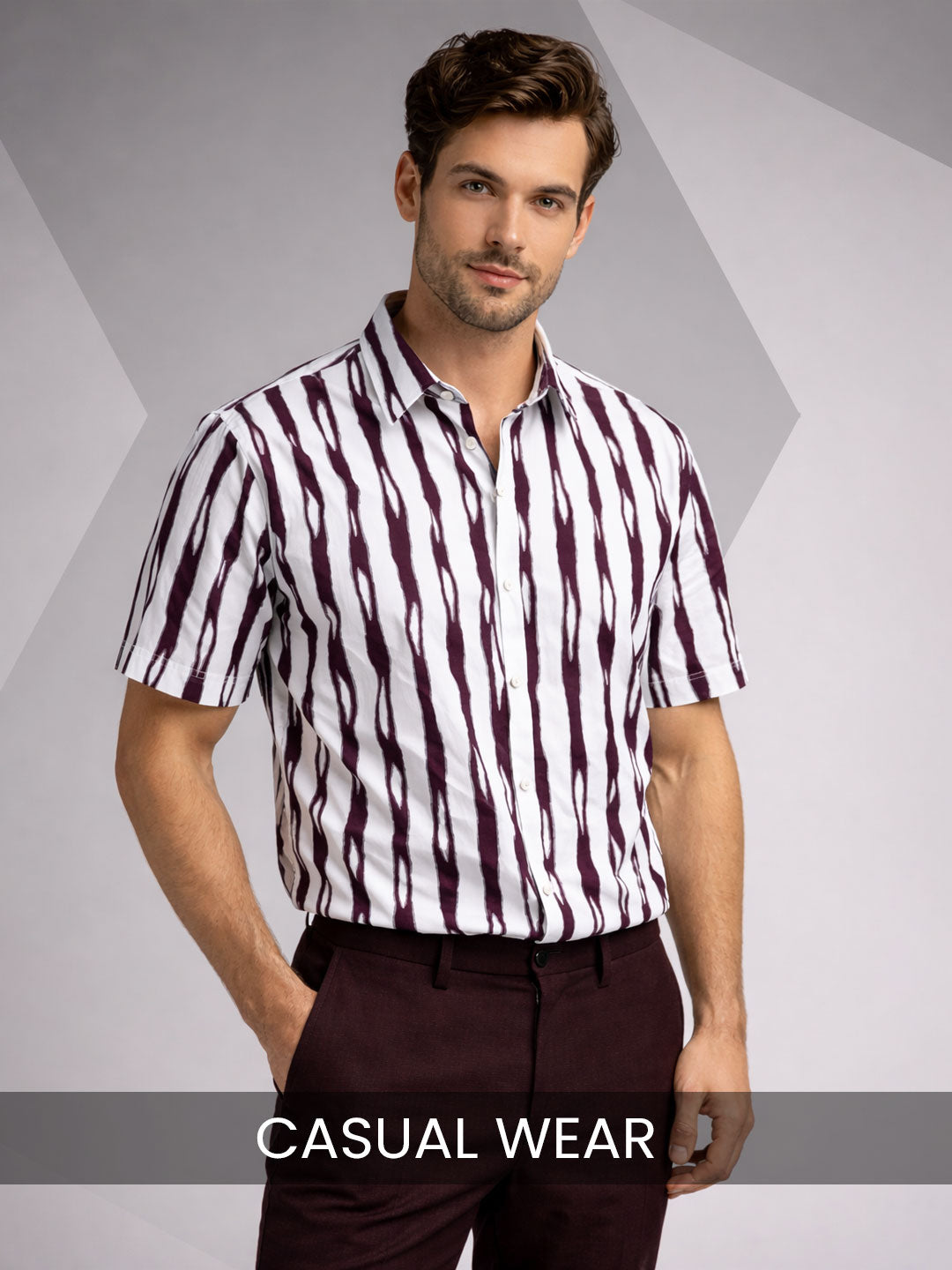 Men's long-sleeve cotton casual dress shirt featuring abstract pattern